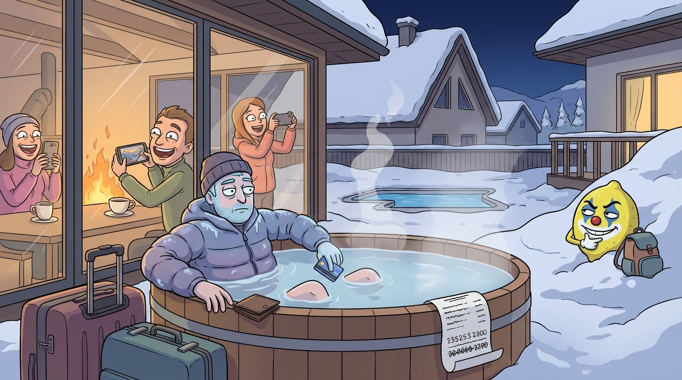 Далі починається національний квест «знайди житло не за нирку». Тобі пропонують дерев’яний будиночок, який зовні виглядає як хлів, а всередині як хлів з ламінатом. Але називається це все, звісно, не «хата тьоті Марії», а «Forest Sky Villa Panorama Chalet & SPA». Це щоб ти точно відчув, що платиш не за стіни, а за шрифт в логотипі.